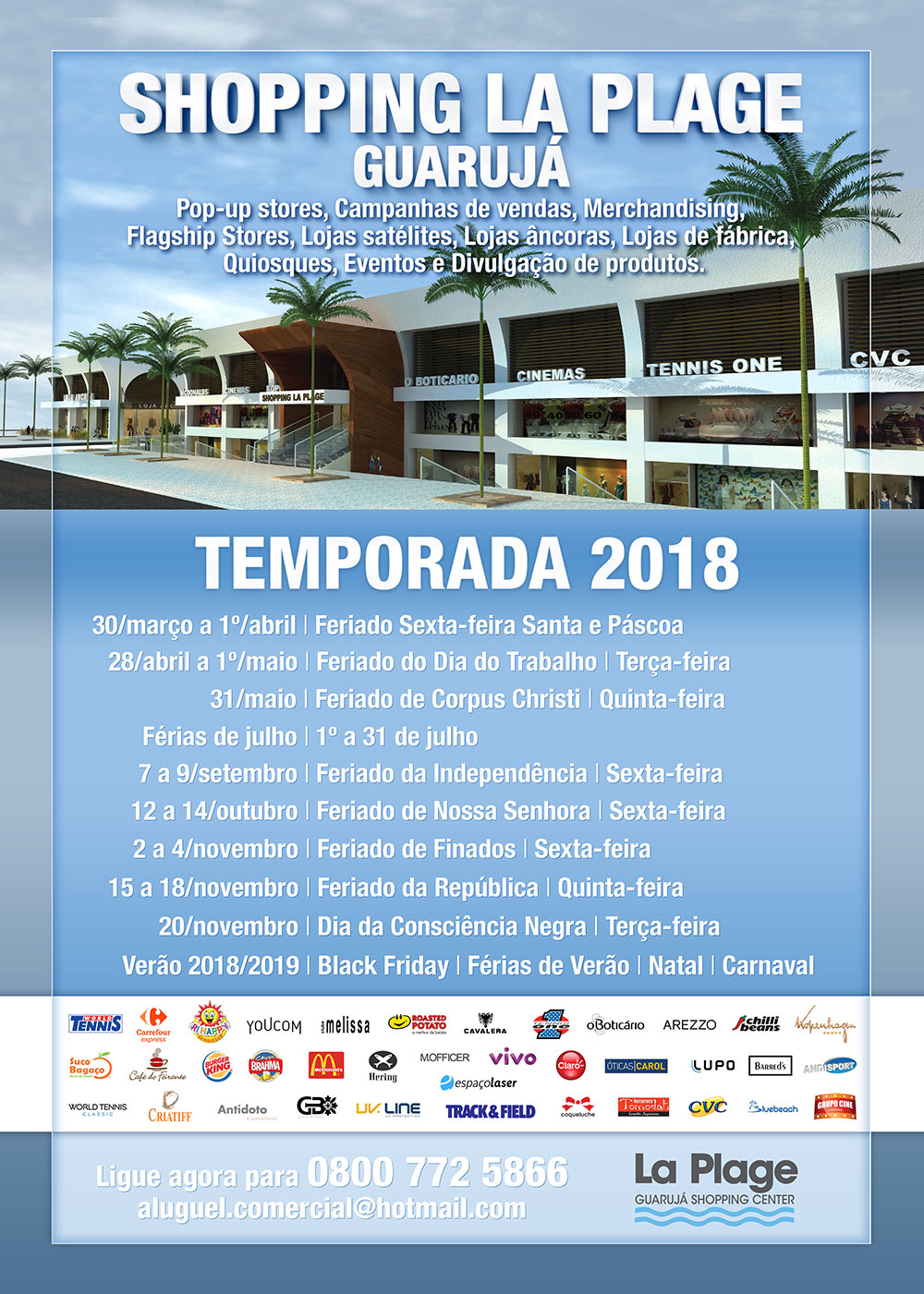 SHOPPING LA PLAGE - Av. Mal. Deodoro da Fonseca, 885 - Pitangueiras - Guarujá - Cep: 11410-221 - Fone: (13) 3386.6819 - (11) 2626.9334